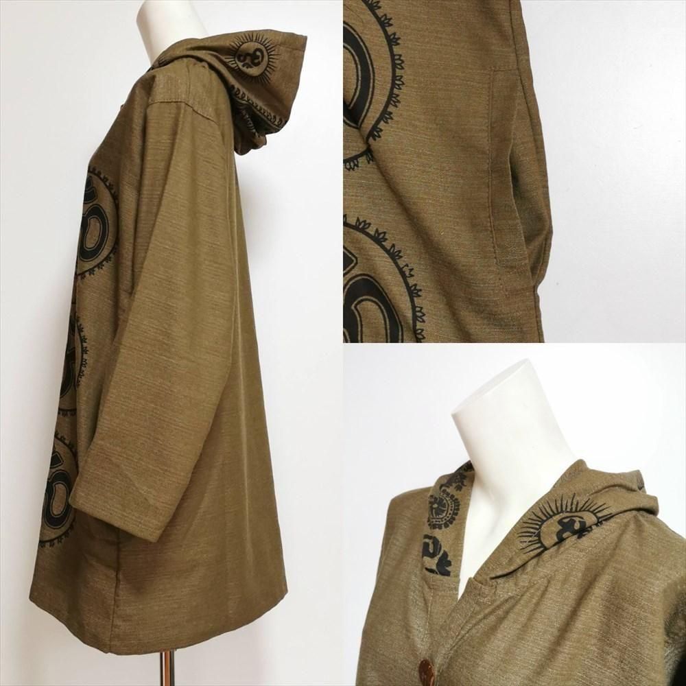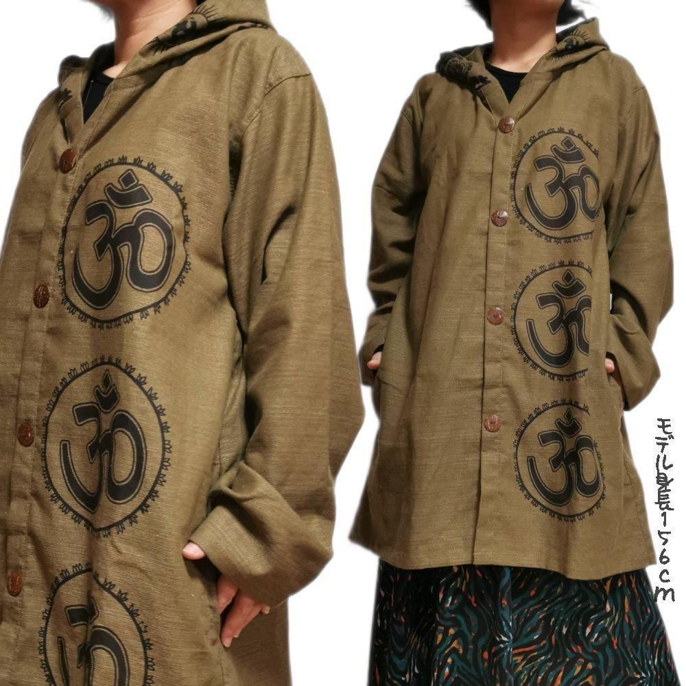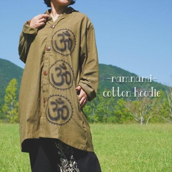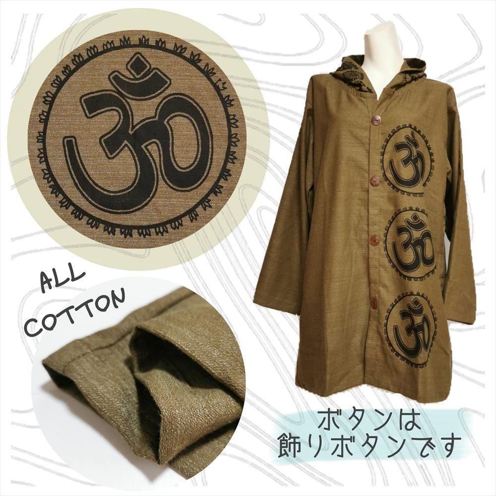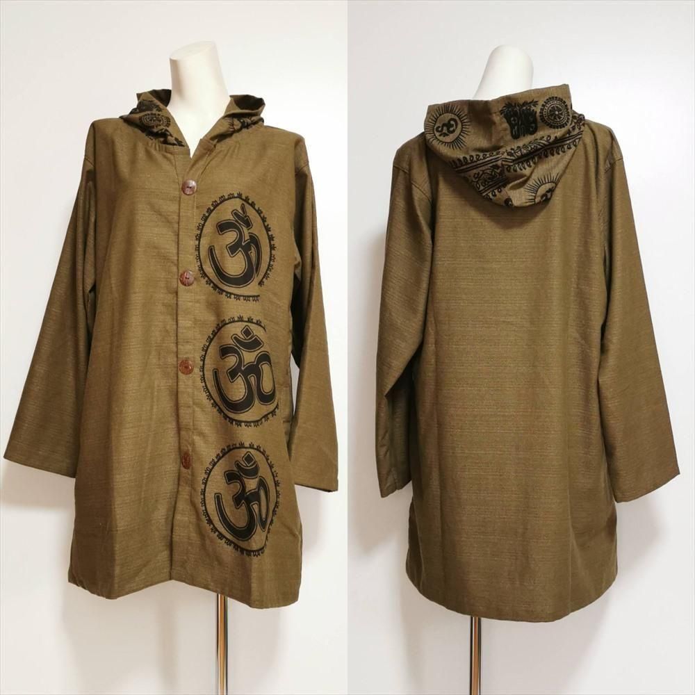 オーム(om)のデザインが目を惹く、ちょっぴり長め丈のコート風プルオーバー♪すぽっと被るタイプの楽ちんアウターです。フ―ドのラムナミデザインや、ココナッツの飾りボタンがさり気なくおしゃれを引立ててくれそう!両サイドにはあると便利なポケット付き。ゆったり着心地でユニセックス使いもおすすめです◎素材はALLコットン、季節の変わり目などロングシーズンお楽しみ頂けます。