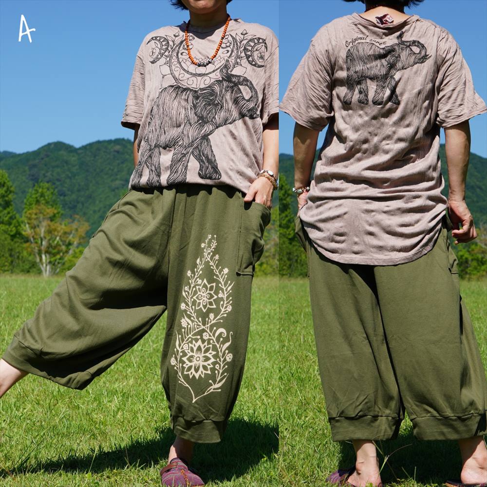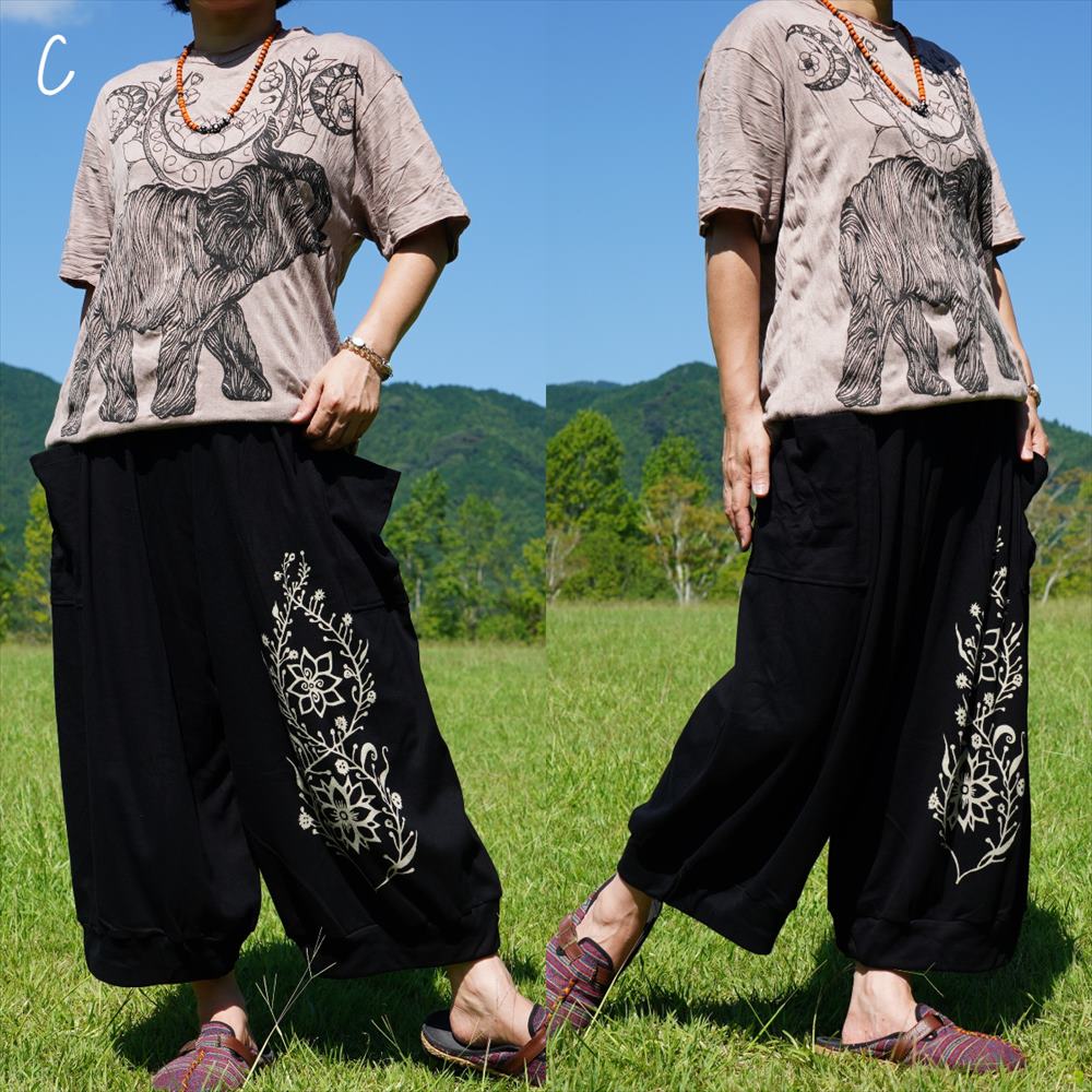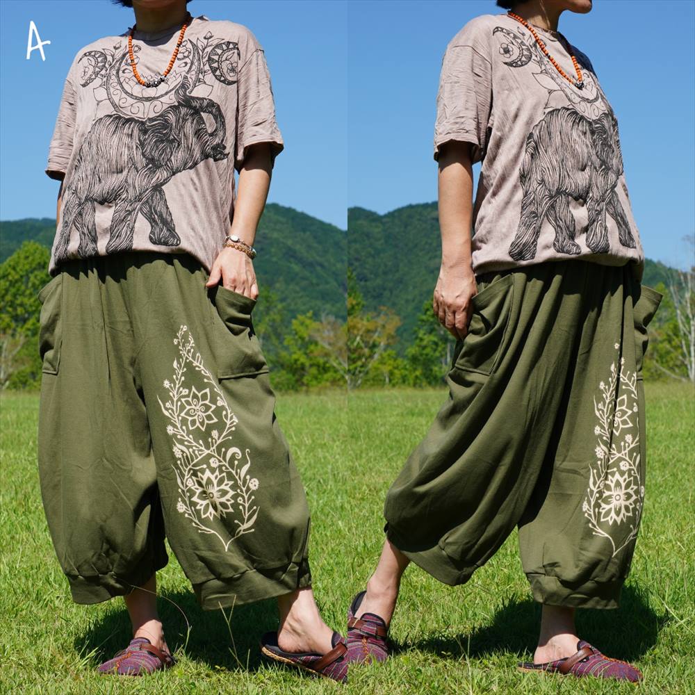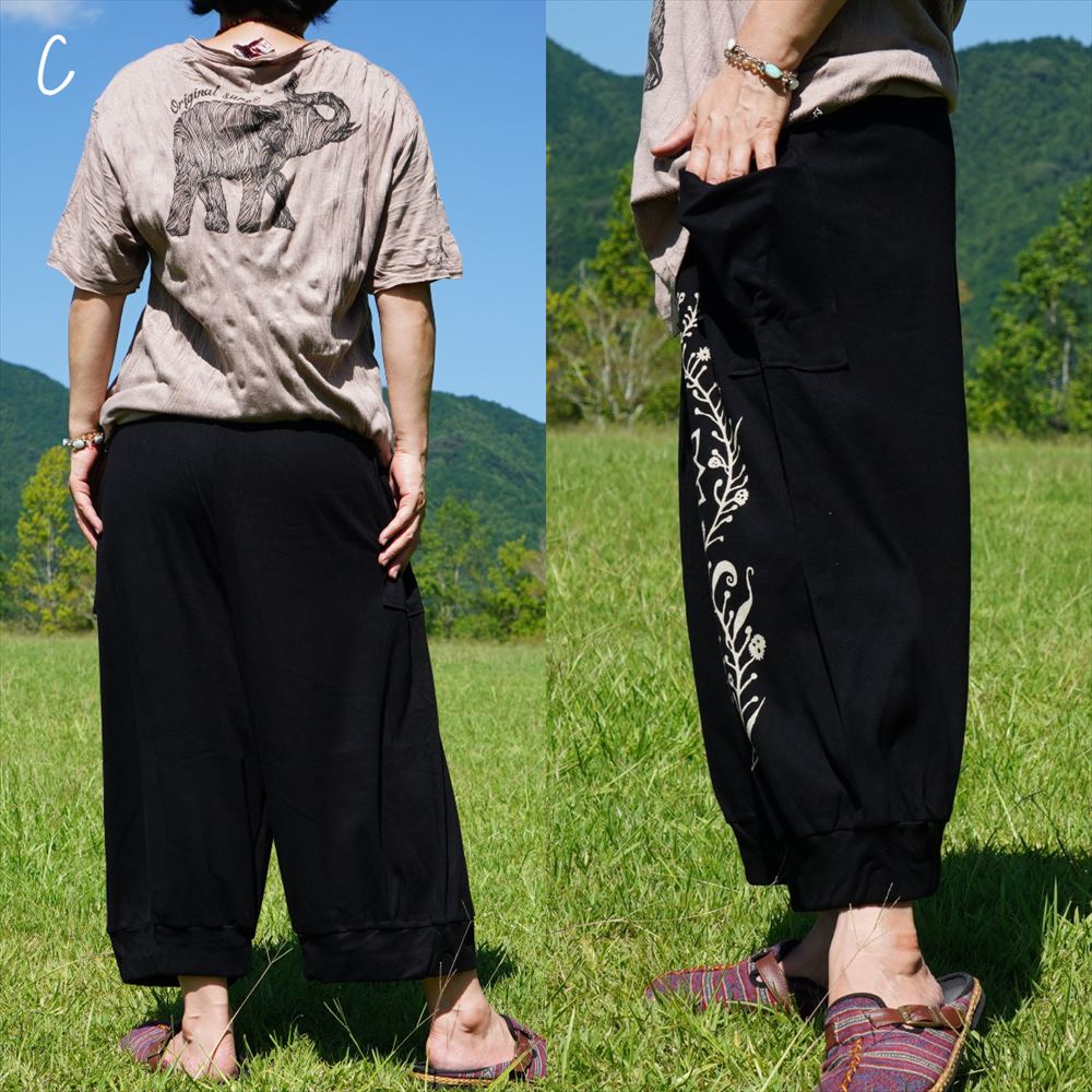 エスニック シンプル ボタニカル コクーンパンツ ゆったり 柔らか コットン*3カラー