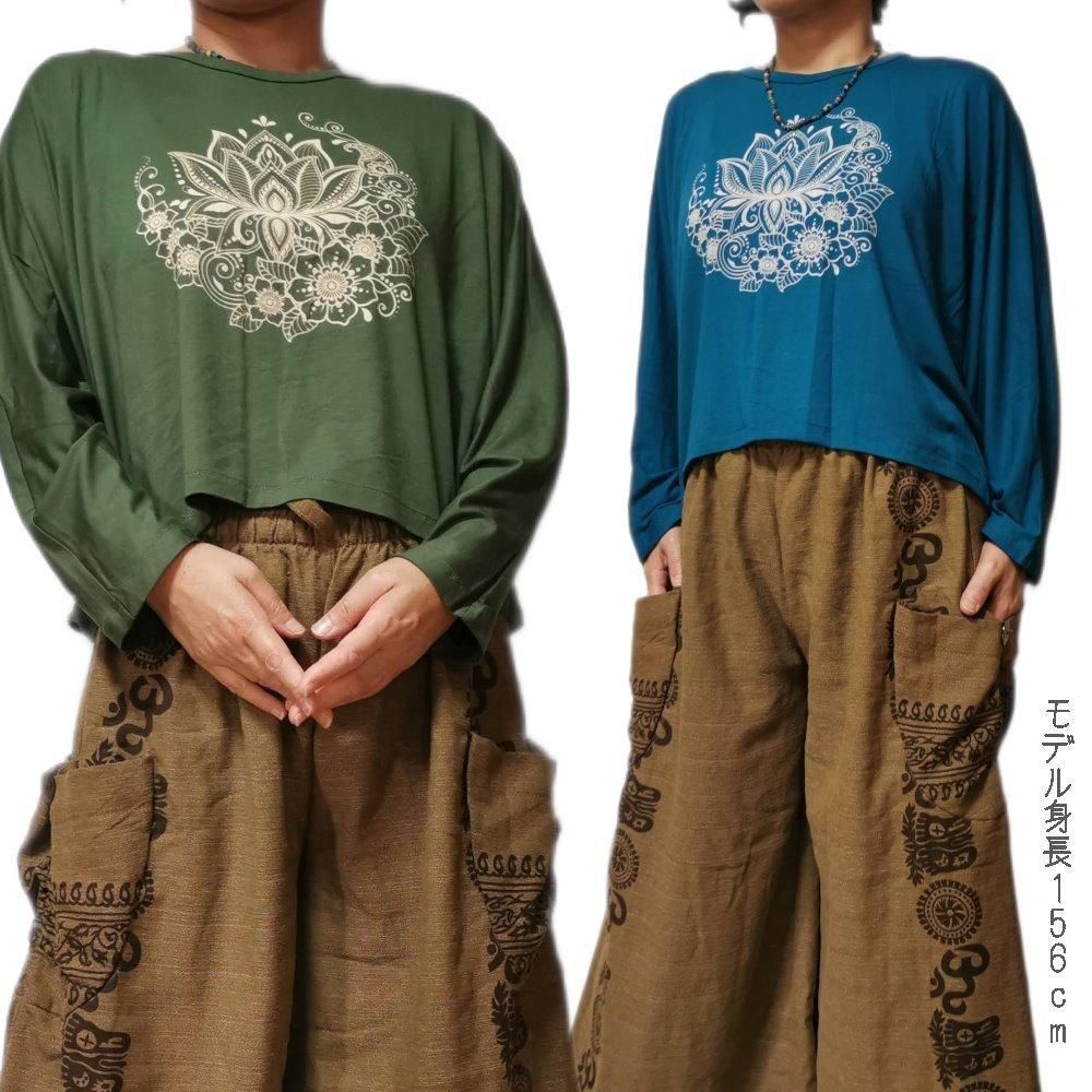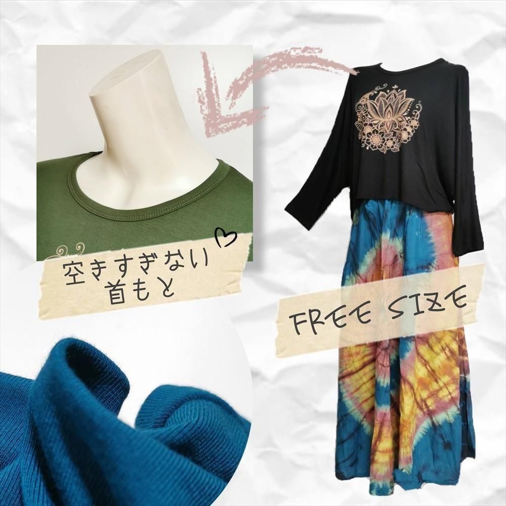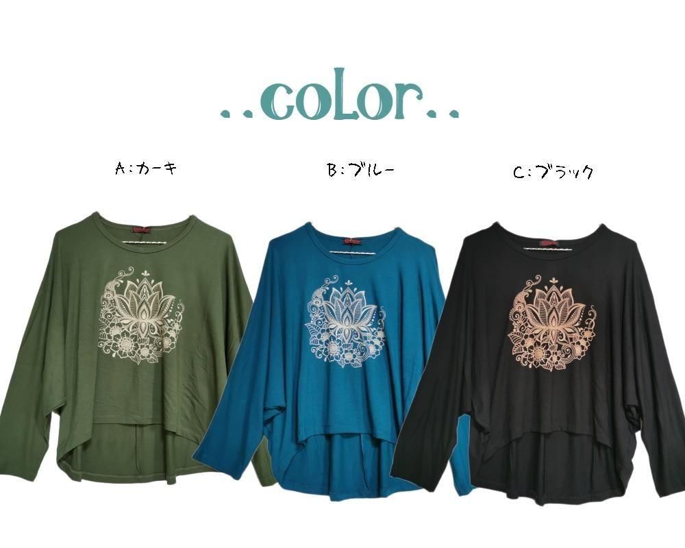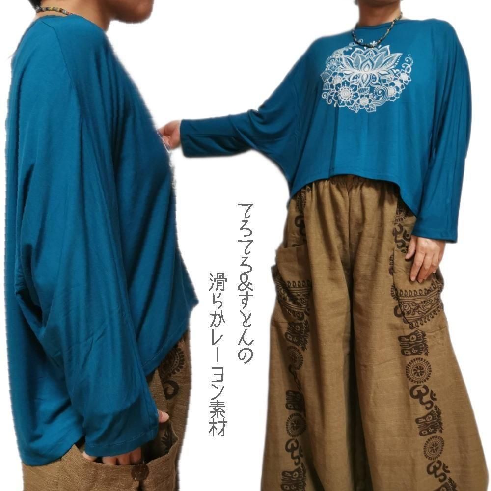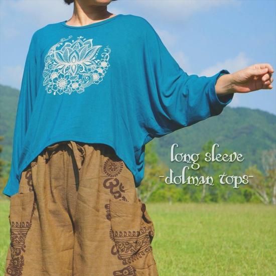 エスニック 大人きれい マンダラ ゆったり ドルマントップス シンプル 長袖 レーヨン*3Color