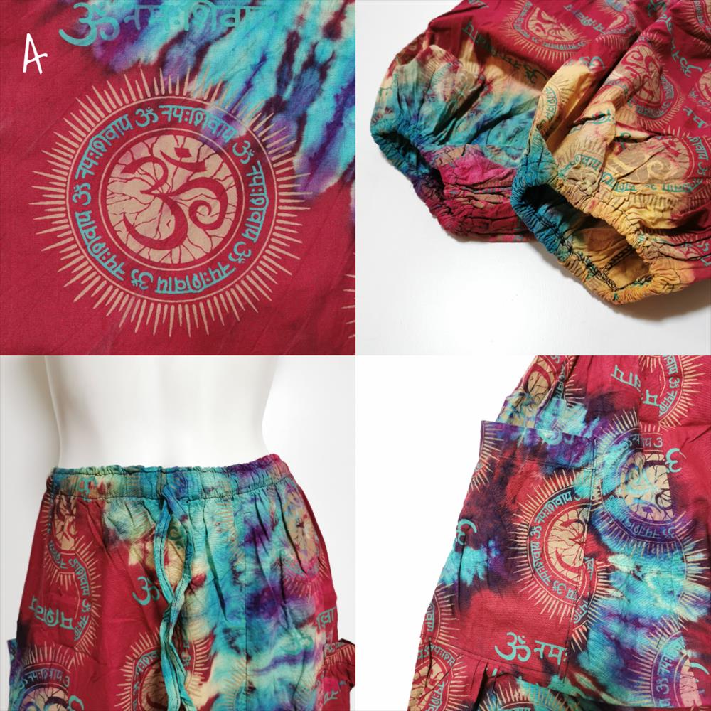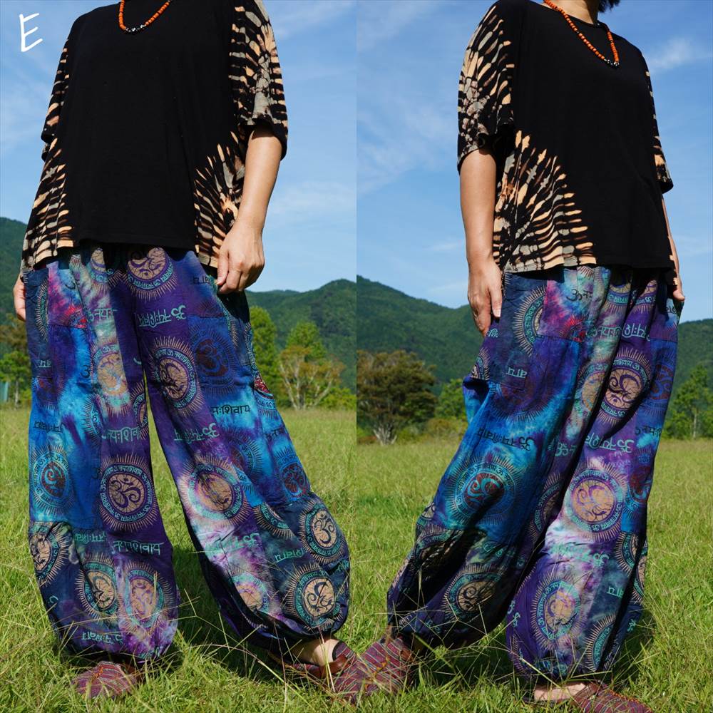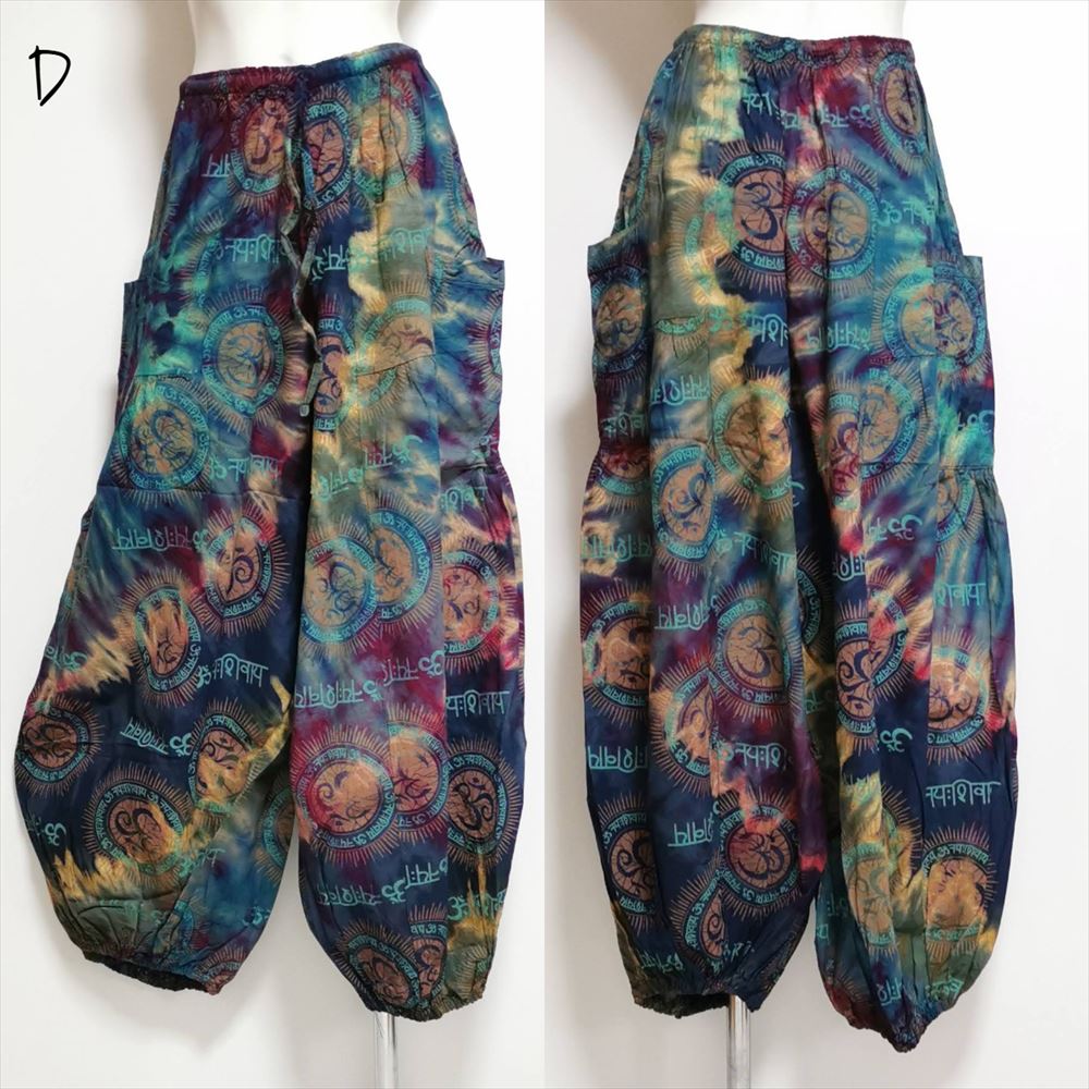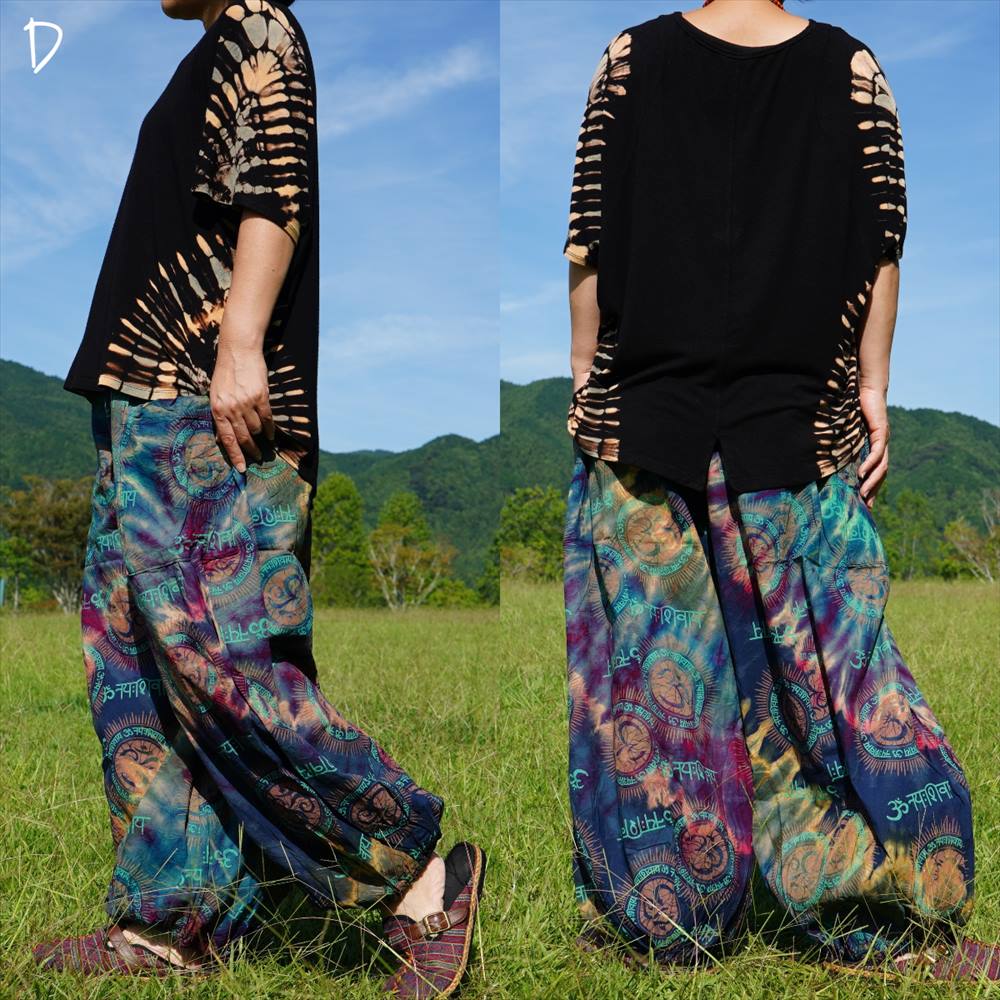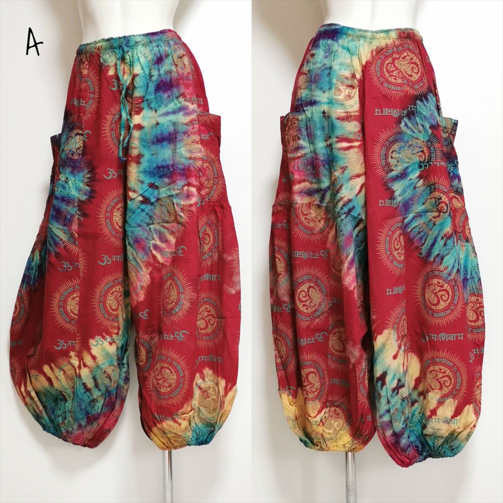 エスニック カラフル タイダイ ゆったり アラジンパンツ オーム柄 コットン ハーレム *6pattern