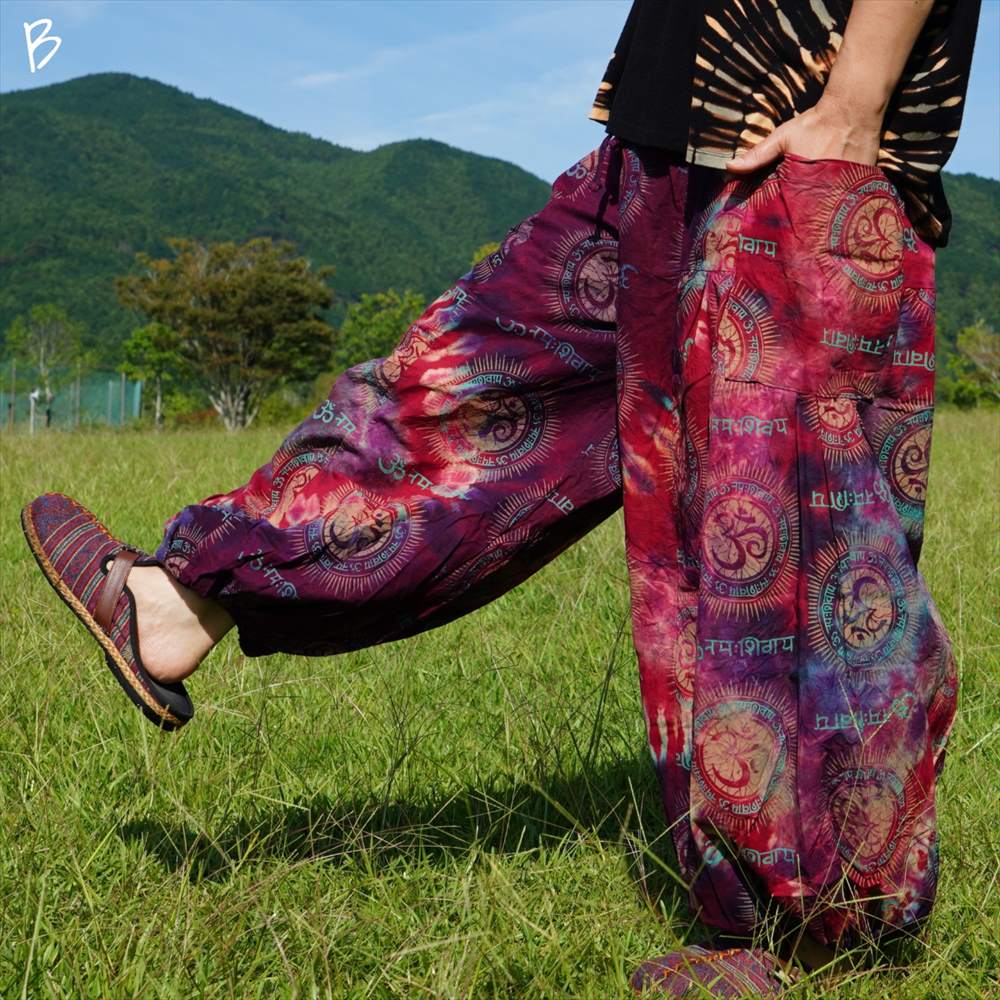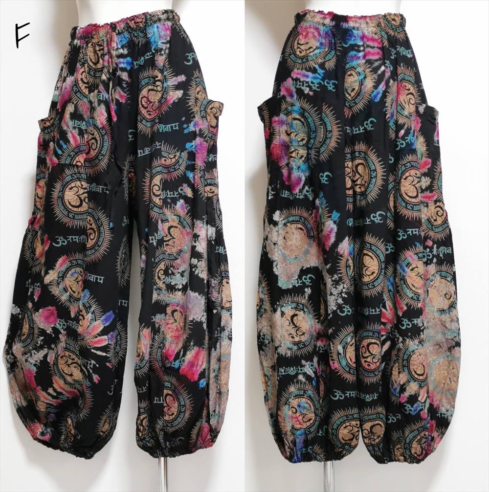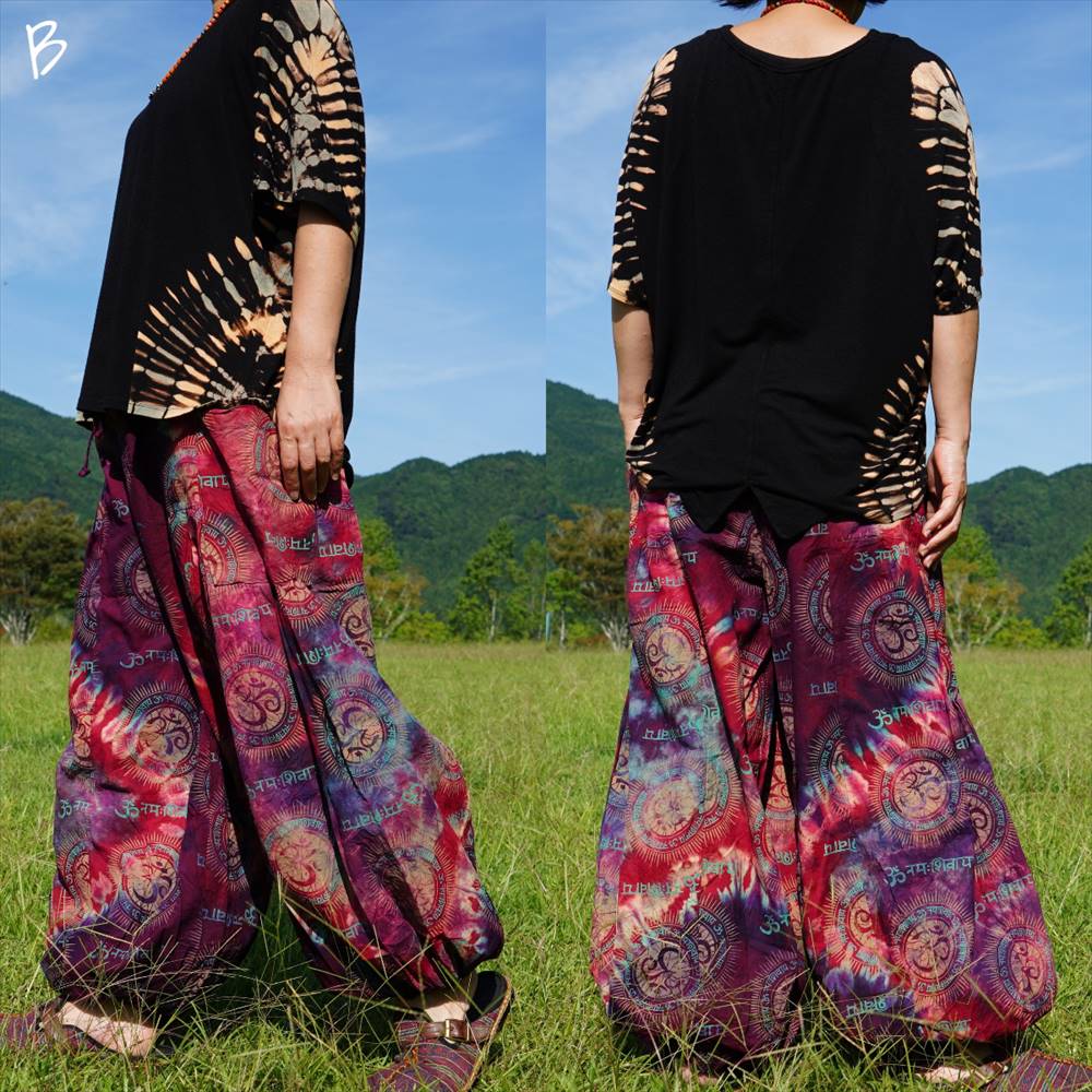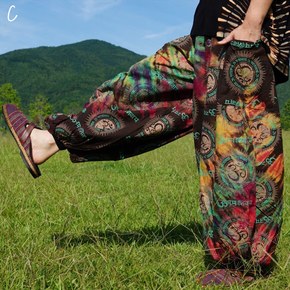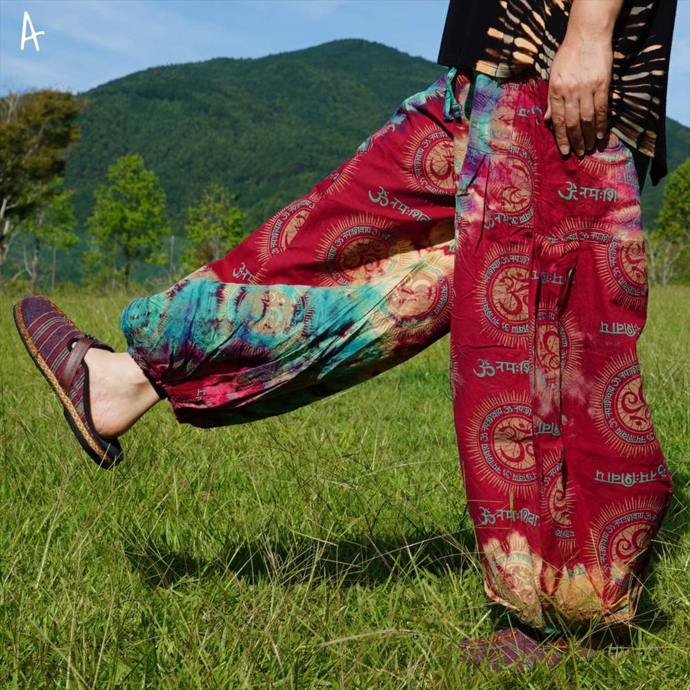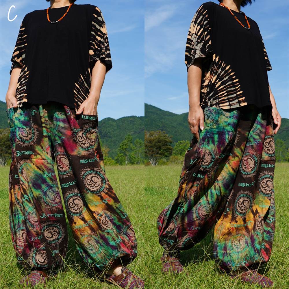 エスニック カラフル タイダイ ゆったり アラジンパンツ オーム柄 コットン ハーレム *6pattern