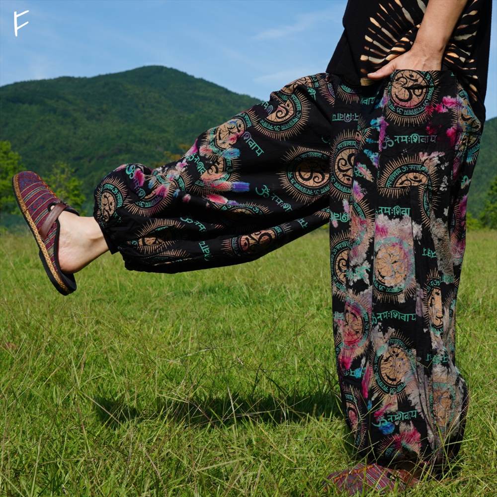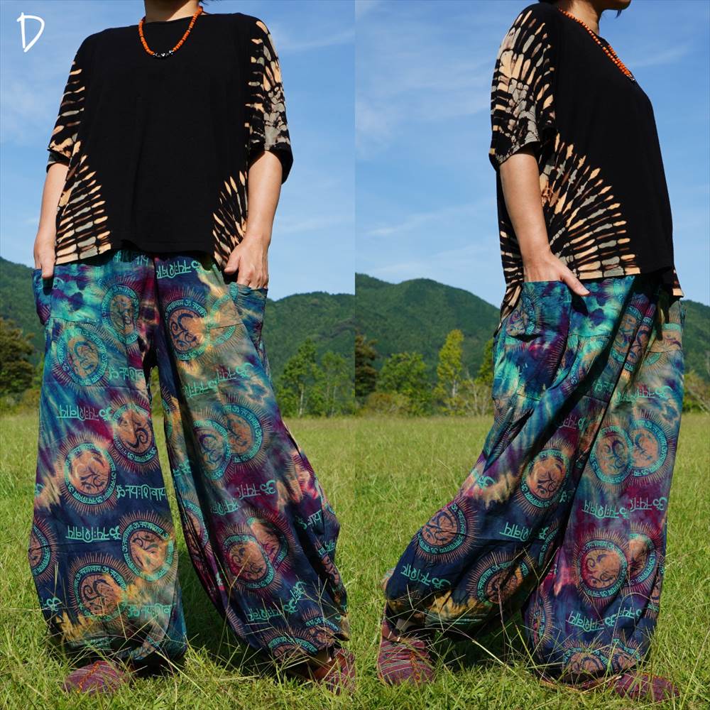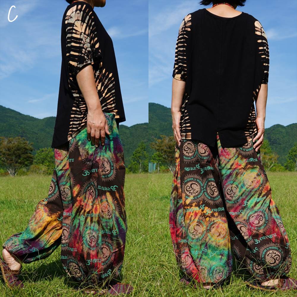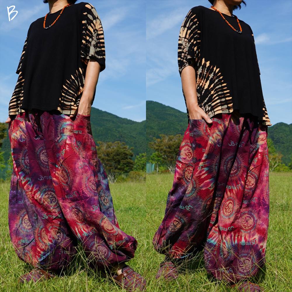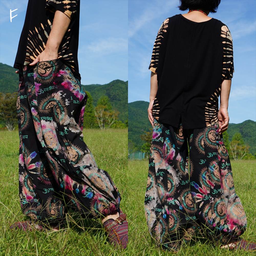 エスニック カラフル タイダイ ゆったり アラジンパンツ オーム柄 コットン ハーレム *6pattern