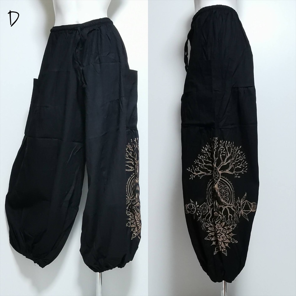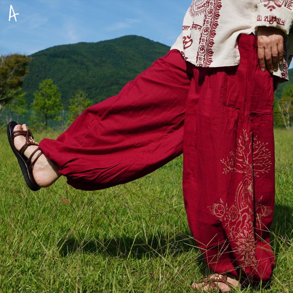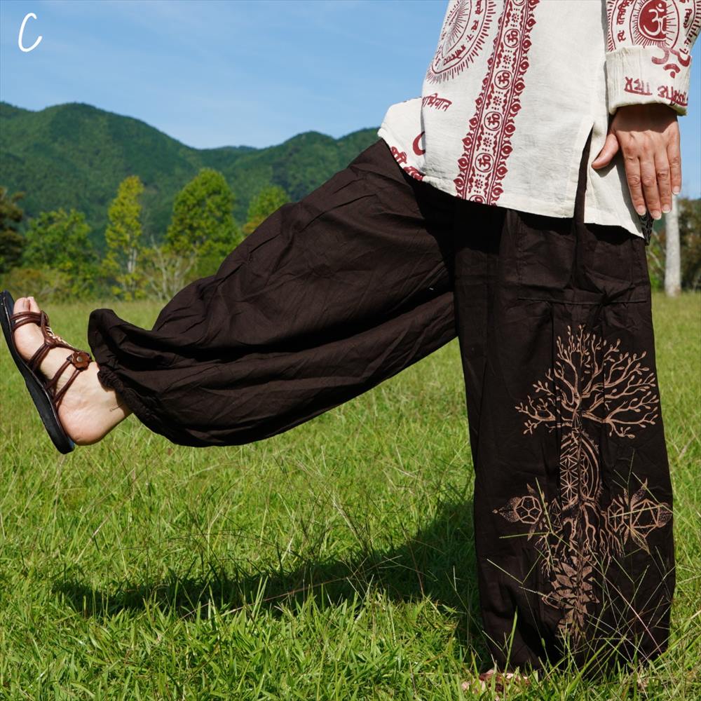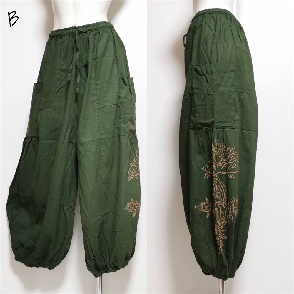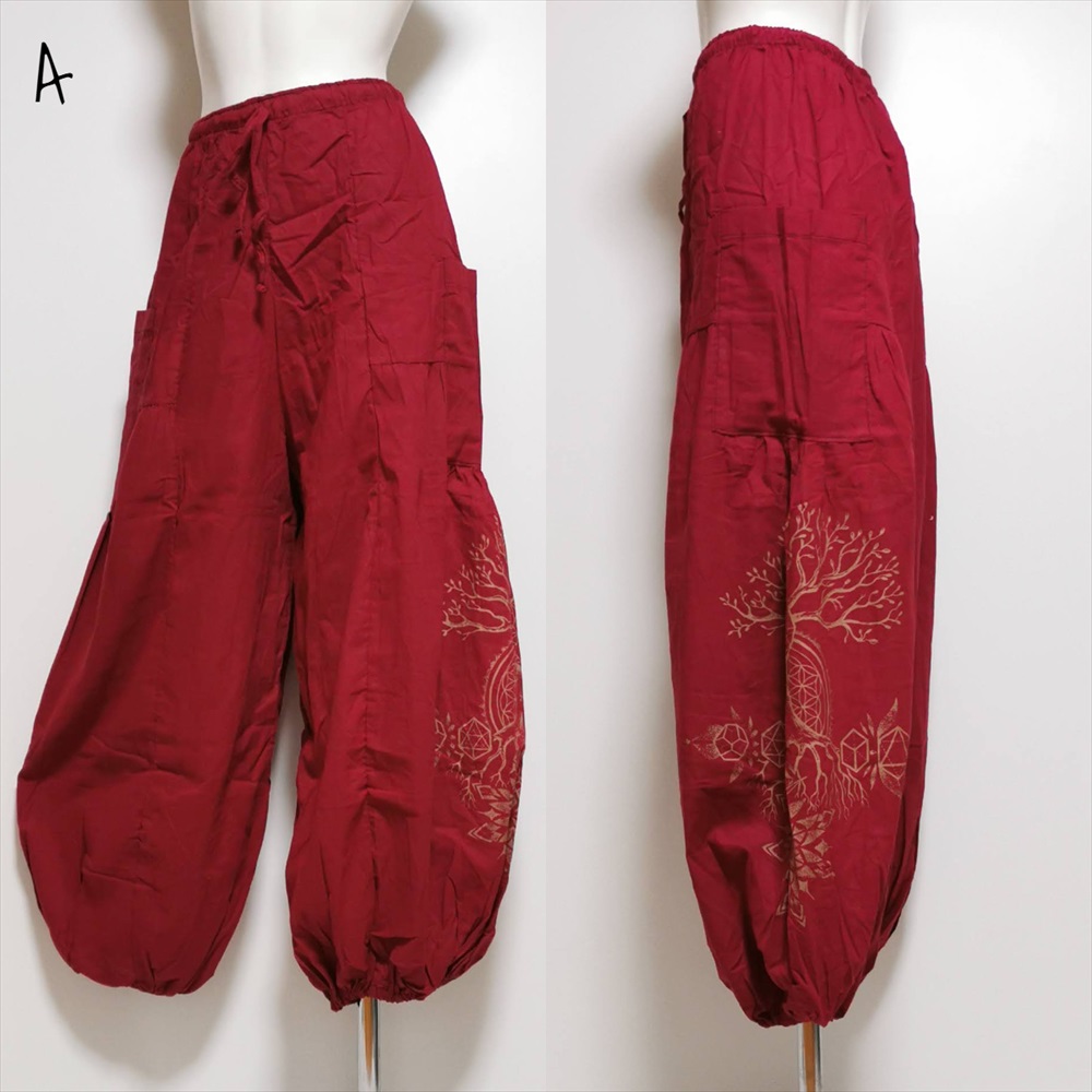 エスニック ゆったり アラジンパンツ -Tree of life- ユニセックス シンプル コットンパンツ*4カラー