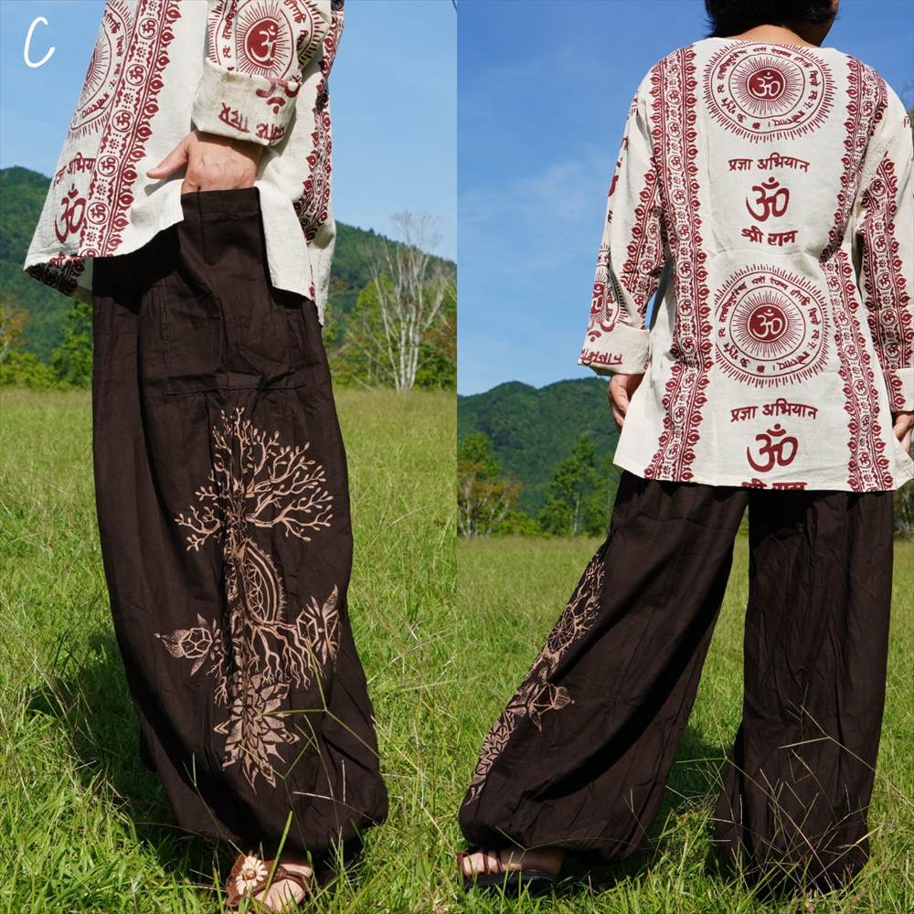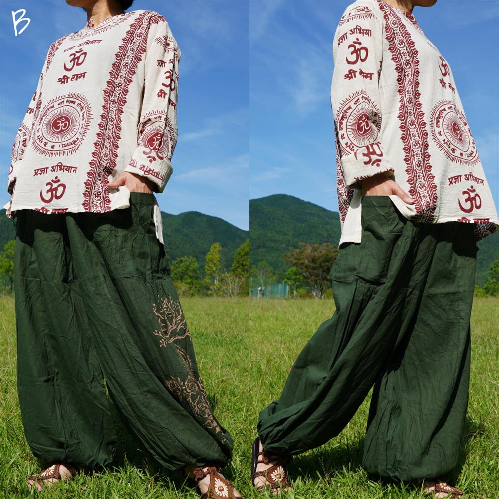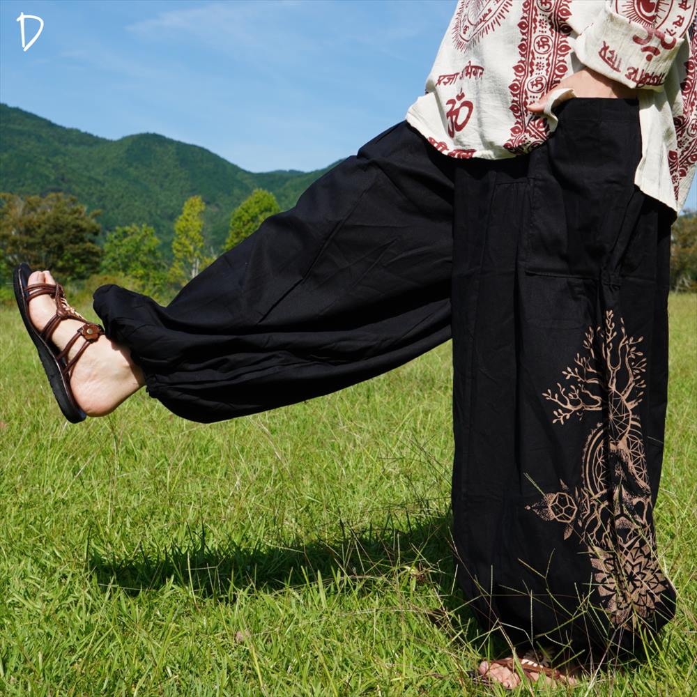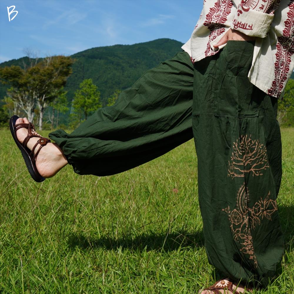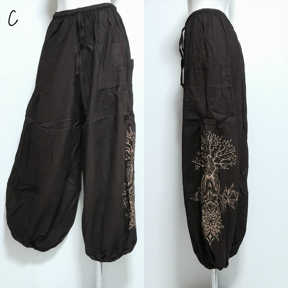 エスニック ゆったり アラジンパンツ -Tree of life- ユニセックス シンプル コットンパンツ*4カラー