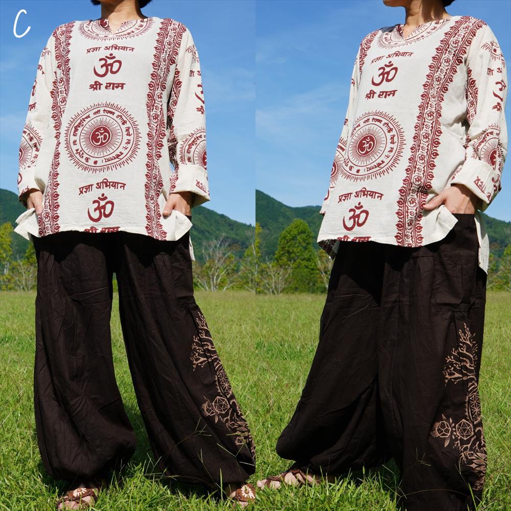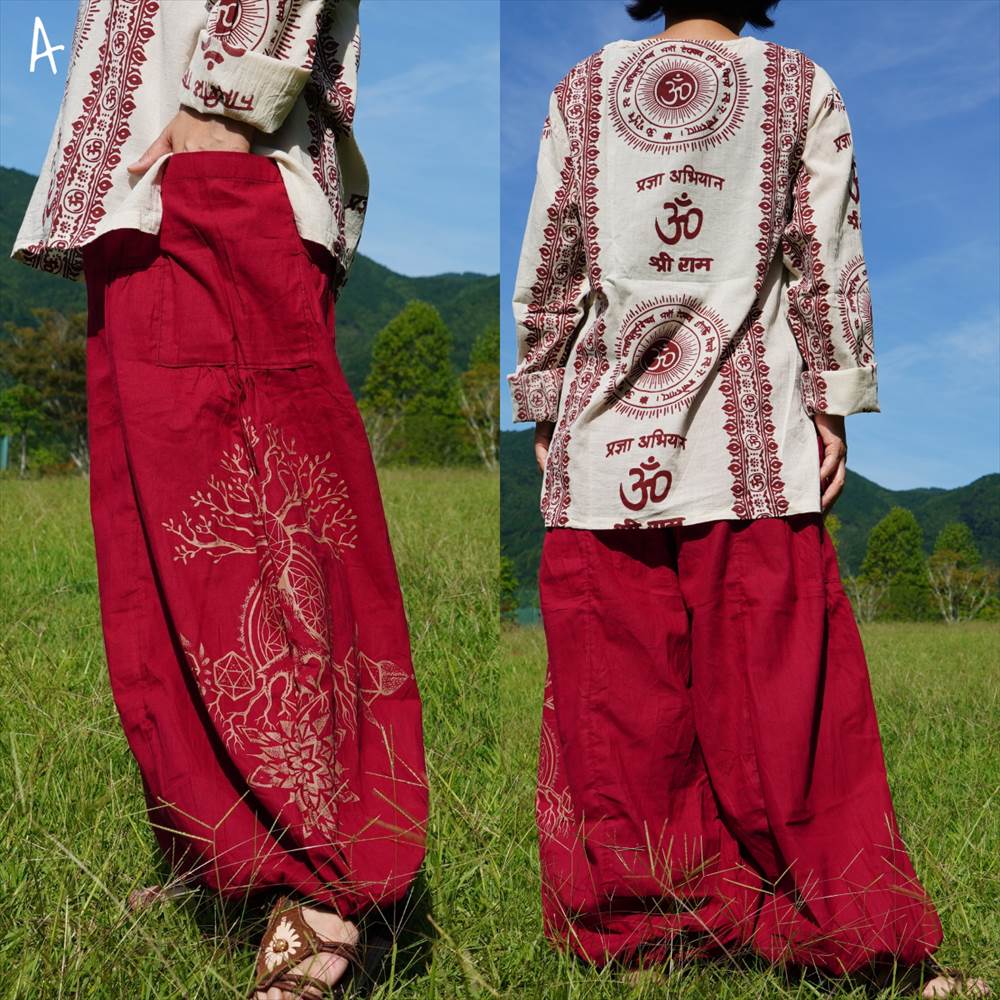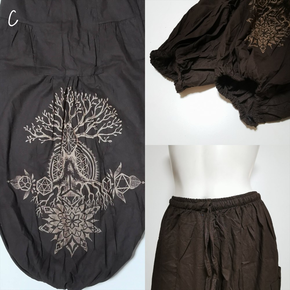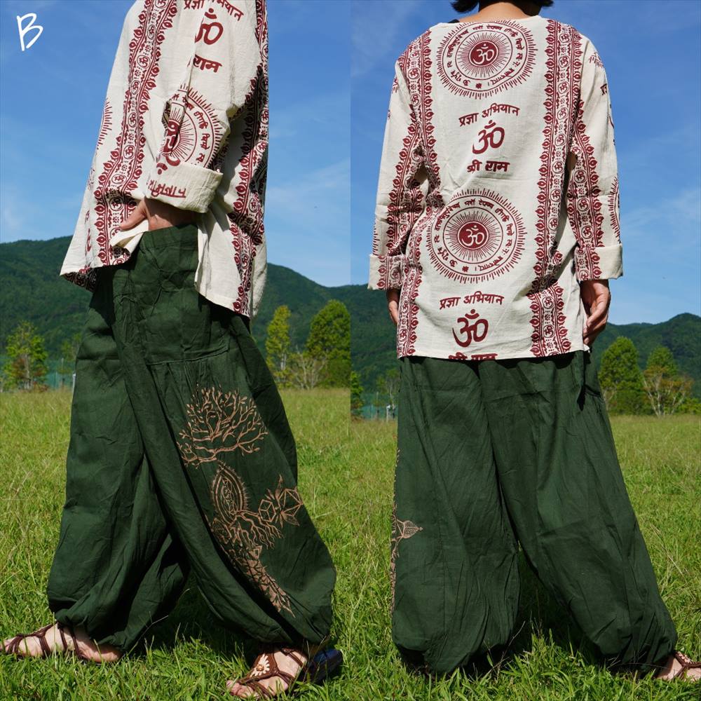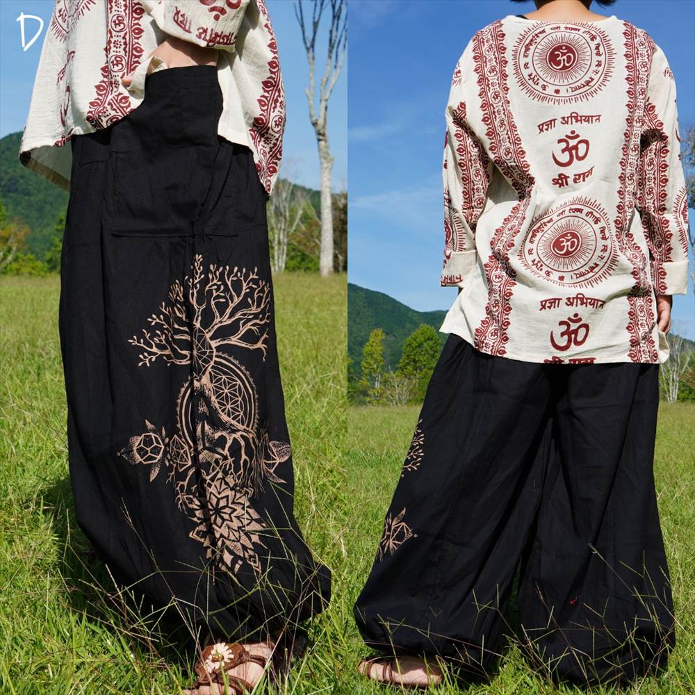 エスニック ゆったり アラジンパンツ -Tree of life- ユニセックス シンプル コットンパンツ*4カラー