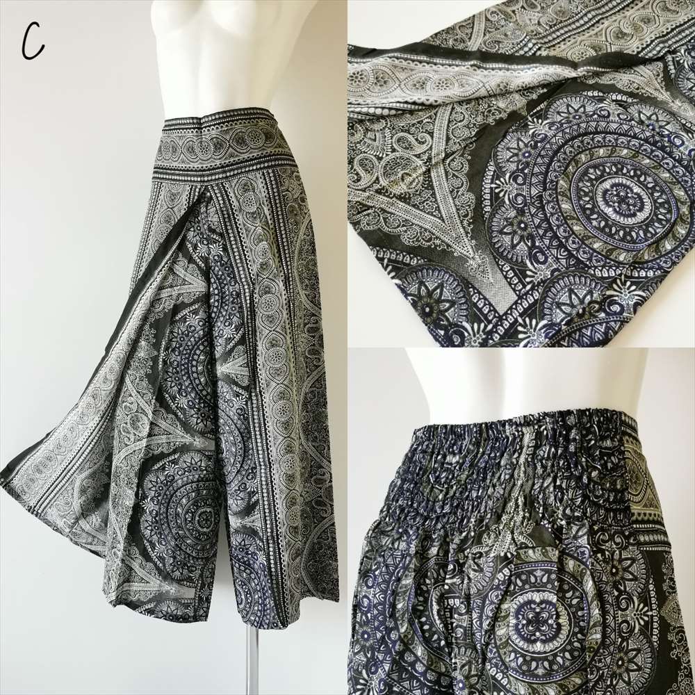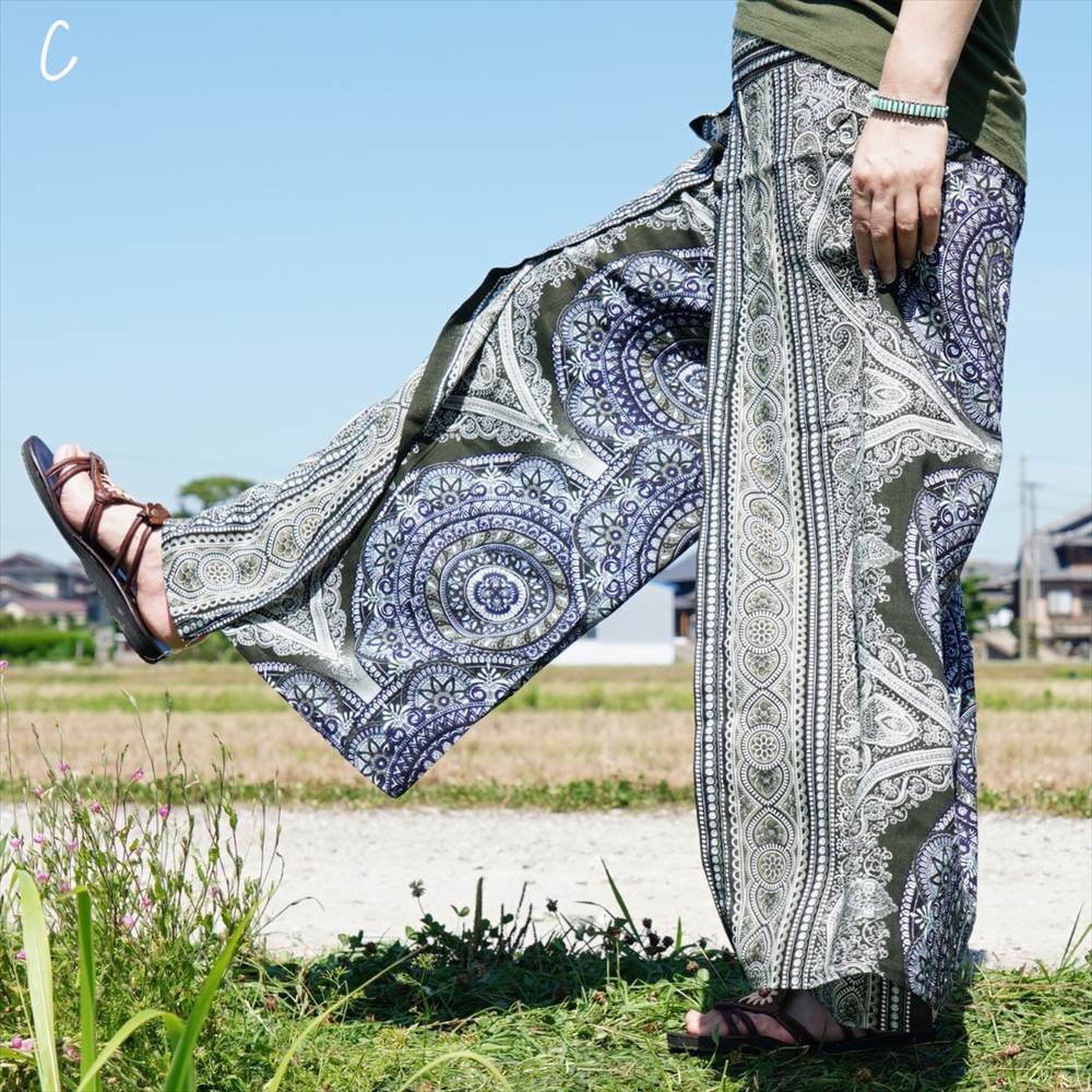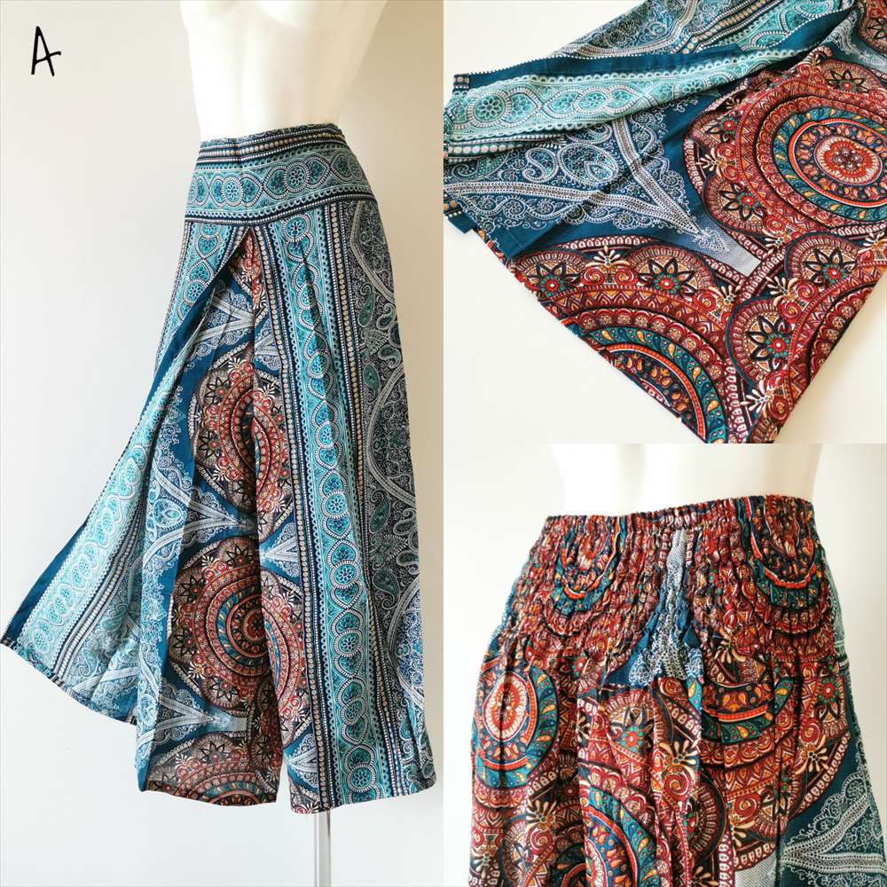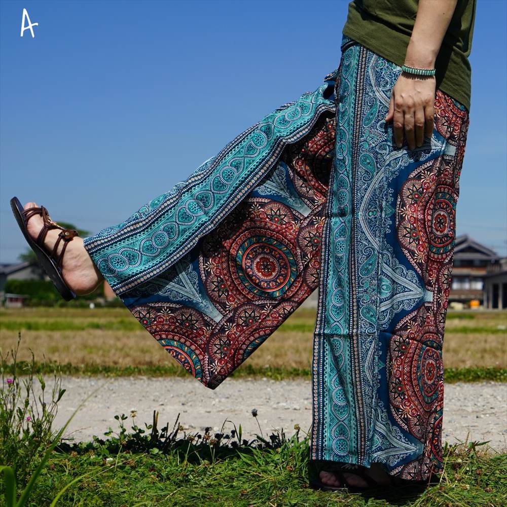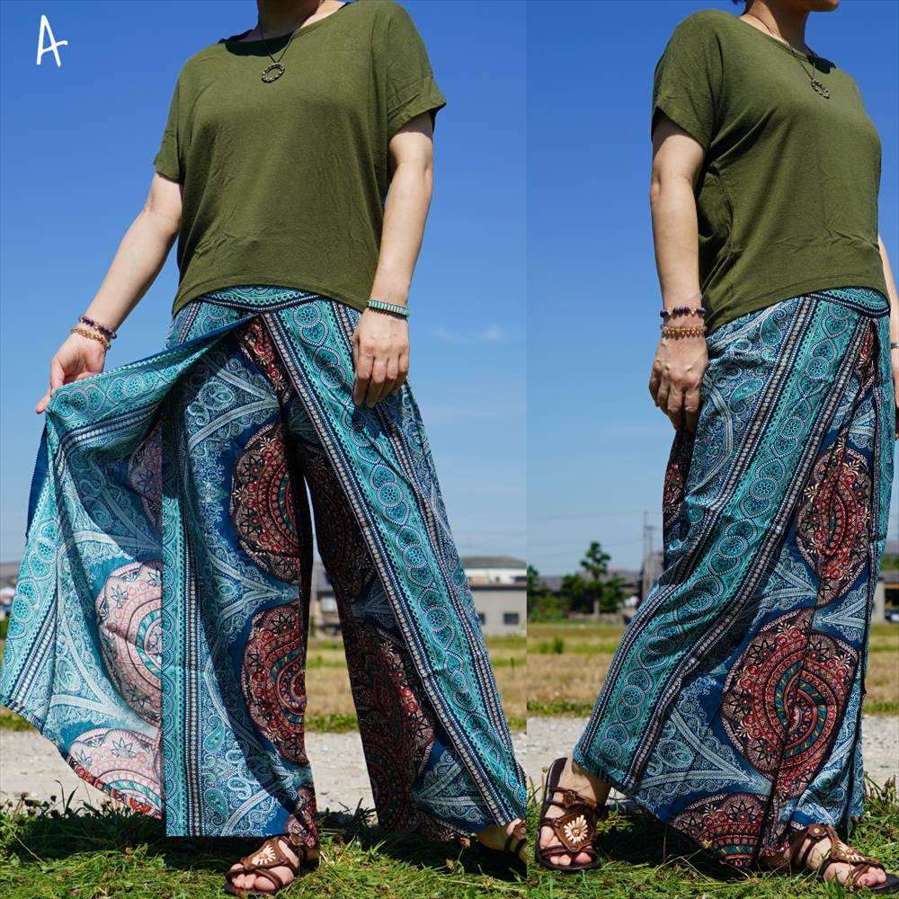 エスニック さらさら レーヨン ラップパンツ エスニック柄 大人 マンダラ ゆったり ワイドパンツ