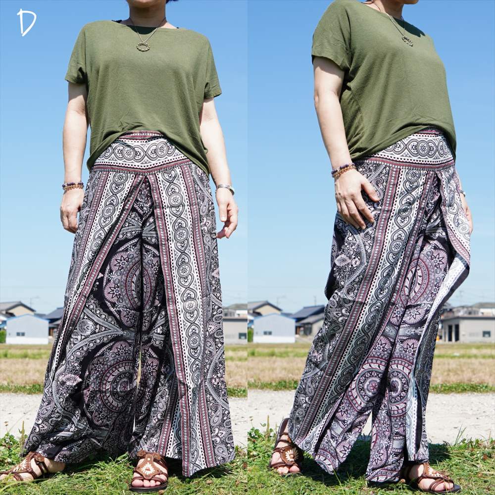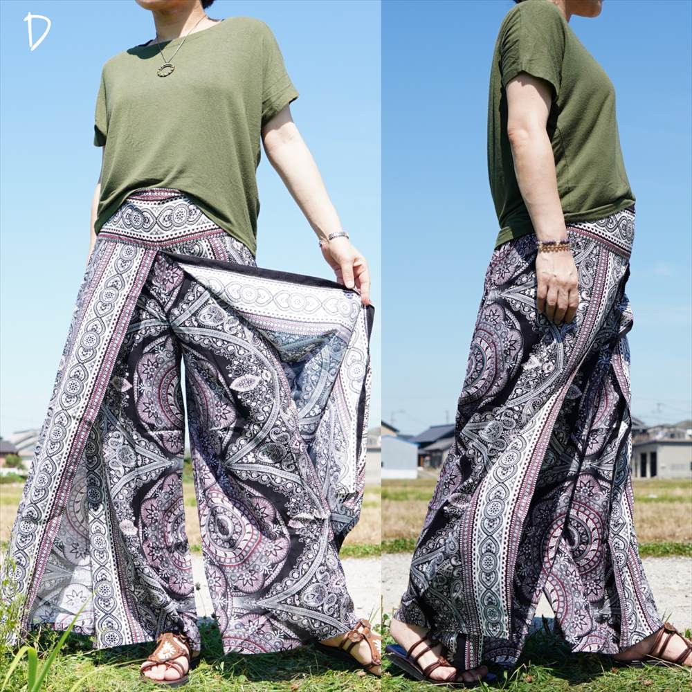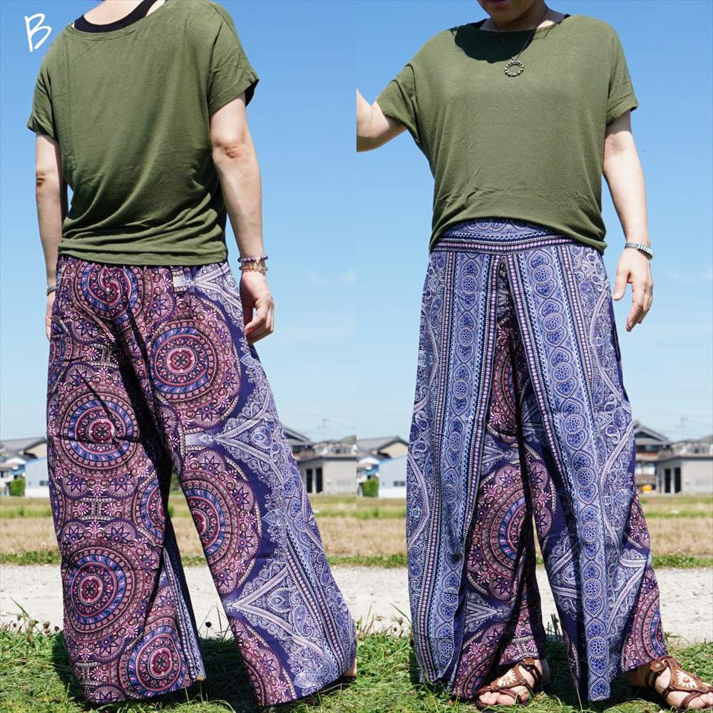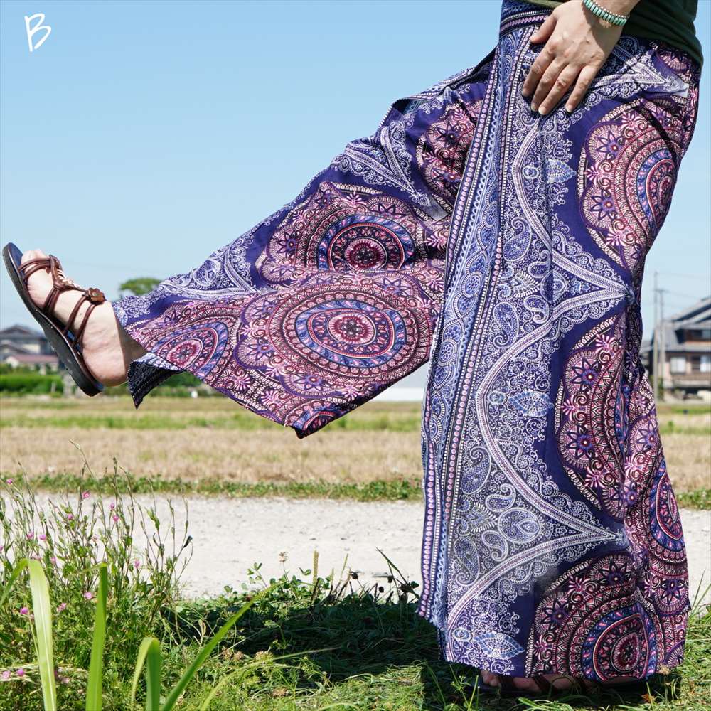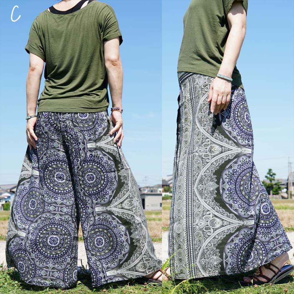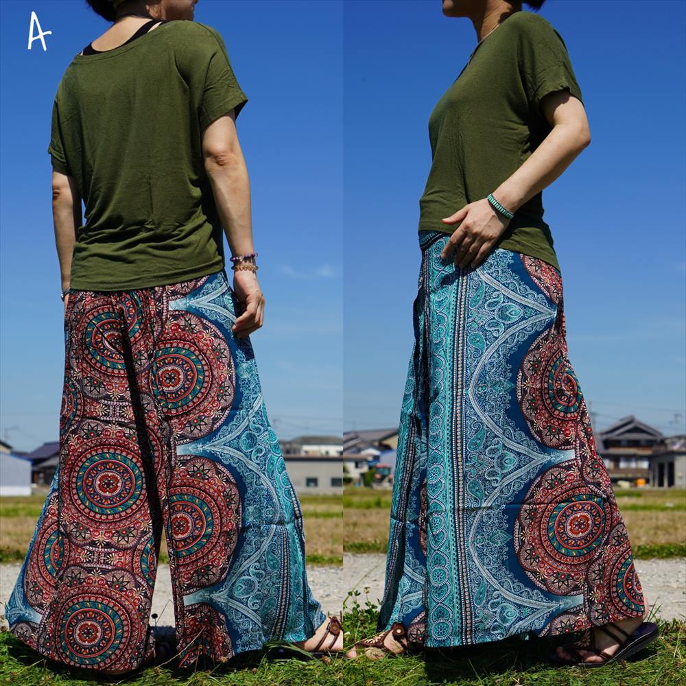 エスニック さらさら レーヨン ラップパンツ エスニック柄 大人 マンダラ ゆったり ワイドパンツ