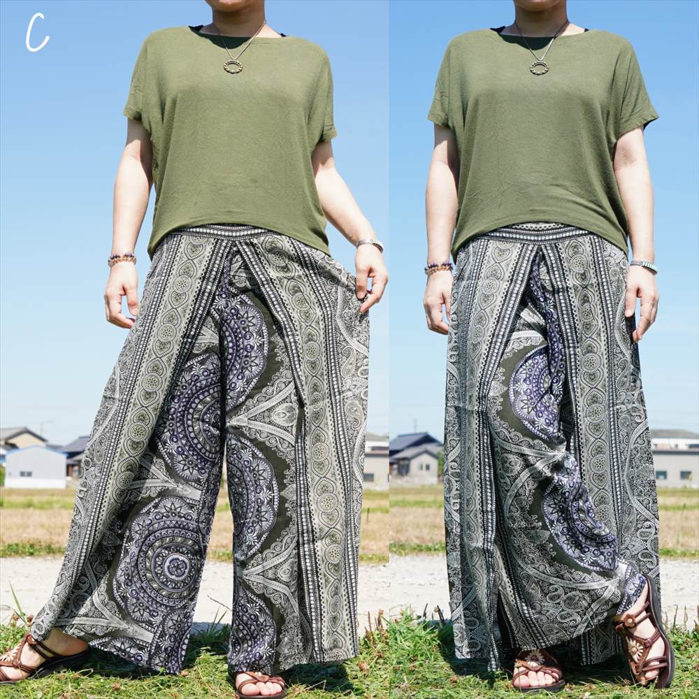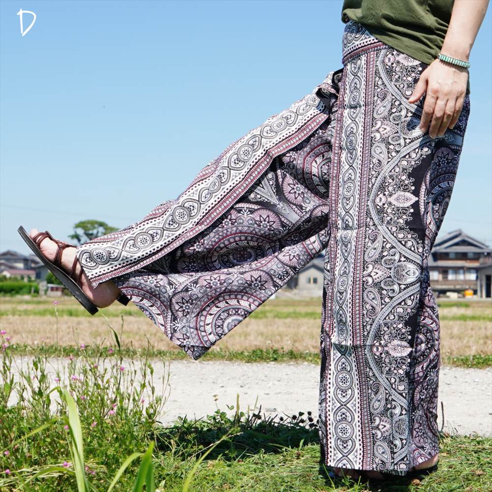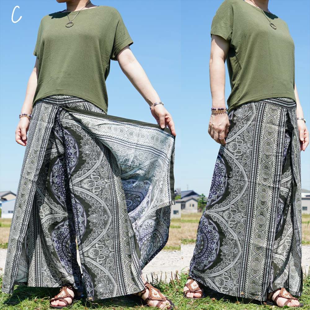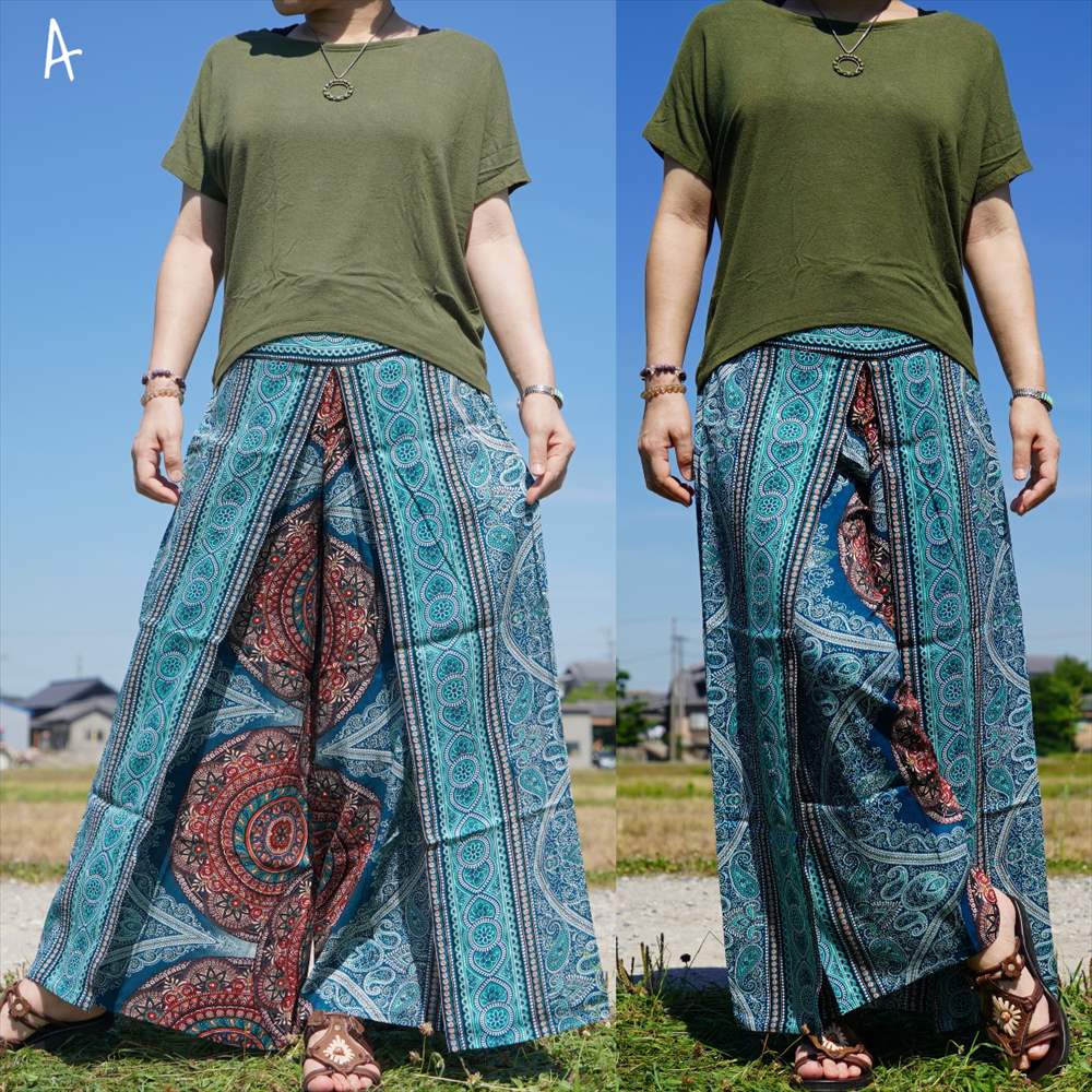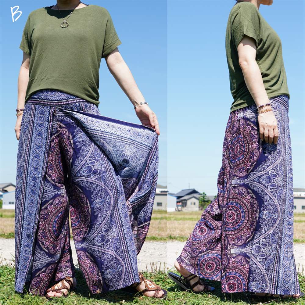 エスニック さらさら レーヨン ラップパンツ エスニック柄 大人 マンダラ ゆったり ワイドパンツ